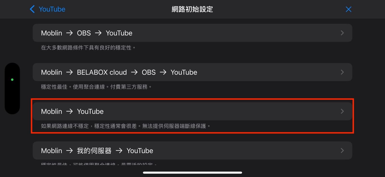 設定二:透過 Moblin → IRL 伺服器 → YouTube